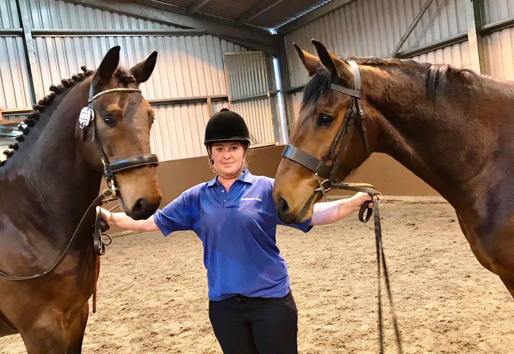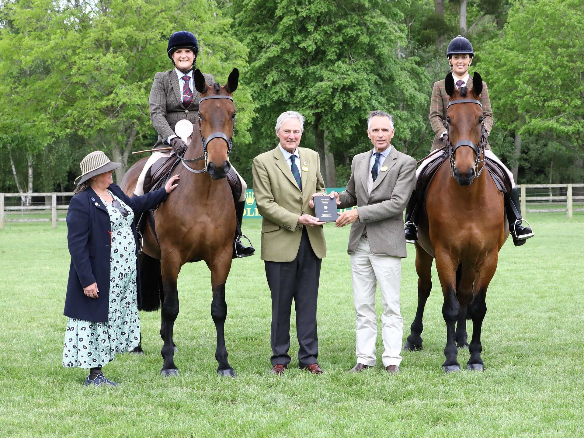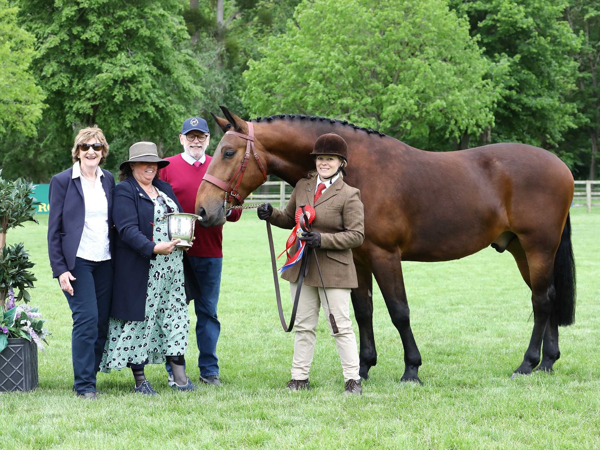 Braithwaite Triumph with owner Tierney Hill, and sponsors Rosie King from Saracen Horse Feeds and Rowena Scrimshaw